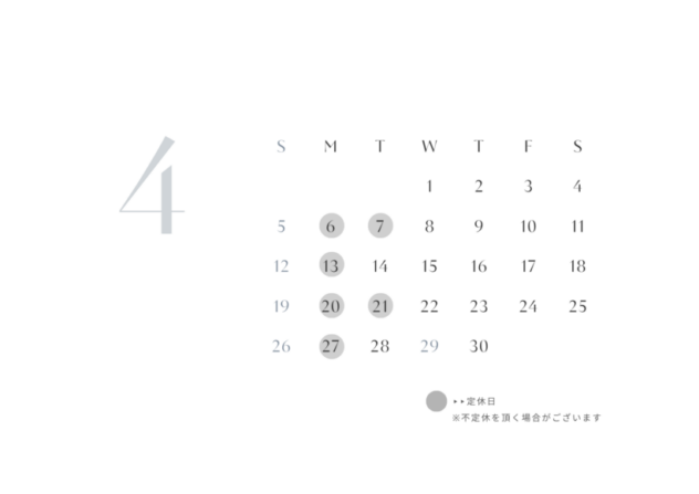 お知らせ 4月の定休日 purstaff 2026-03-31 【4月の定休日】 6,13、20,27(毎週月曜) 7,21日(第1・3火曜) となります。 🎂4月お誕生日のお客様 公式LINEで10%OFFクーポンが発行されます💛 🌸公式LINE会員様限定春クーポン 4月1日~26日まで使えるクーポンを発行致します✨ 是非ご活用ください♩