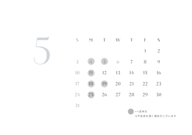 お知らせ 5月の定休日 purstaff 2026-04-24 【5月の定休日】 4,11、18,25(毎週月曜) 5,19日(第1・3火曜) となります。 🎂5月お誕生日のお客様 公式LINEで10%OFFクーポンが発行されます💛